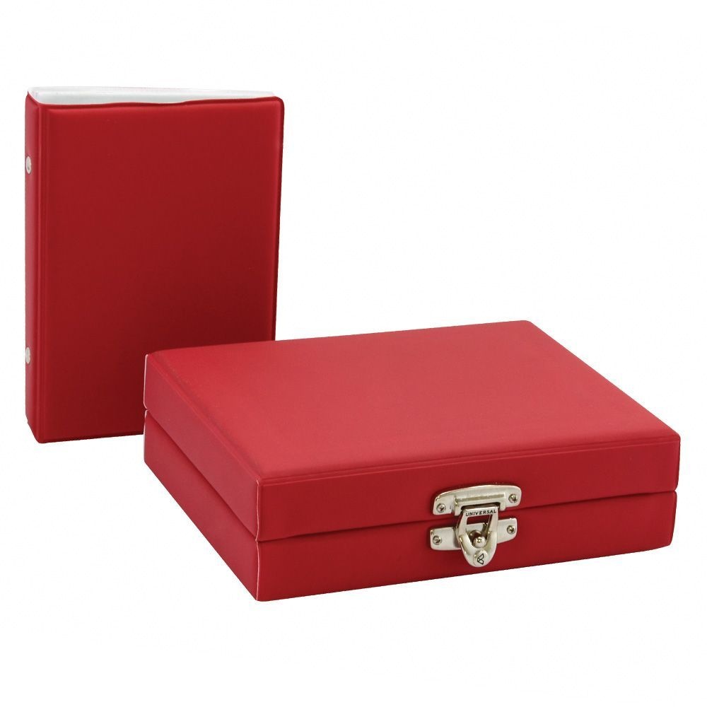 Estojo e Álbum capa básica em couro sintético liso. Estojo com revestimento interno em material sintético.